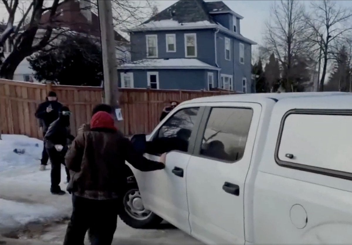 ICE polisinin araçlarının önünü kesen vatandaşlar, arabalara vurarak ve kartopu atarak saldırıda bulundu.