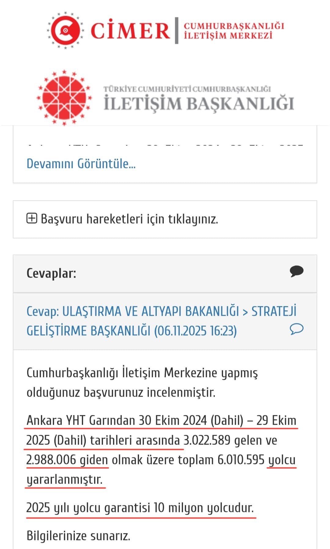 CHP’li Yavuzyılmaz, CİMER başvurusu sonrası Ulaştırma ve Altyapı Bakanlığı Strateji Geliştirme Başkanlığı’nın verdiği garanti yolcu açıklamasını duyurdu.