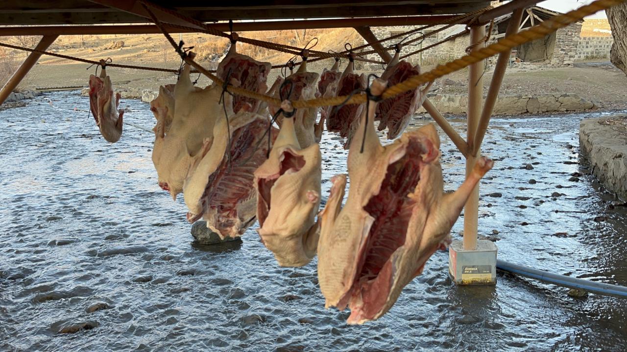 Kaz etinin lezzetini artıran ve uzun süre saklanmasını sağlayan bu geleneksel yöntem, Kars’ın iklim şartlarından gücünü alıyor. Kaz etleri, özellikle sabah ve akşam ayazını alması için yüksek yerlere asılıyor. Bu, etin hem rüzgar almasını hem de soğuğun iyice işlemesini sağlıyor.