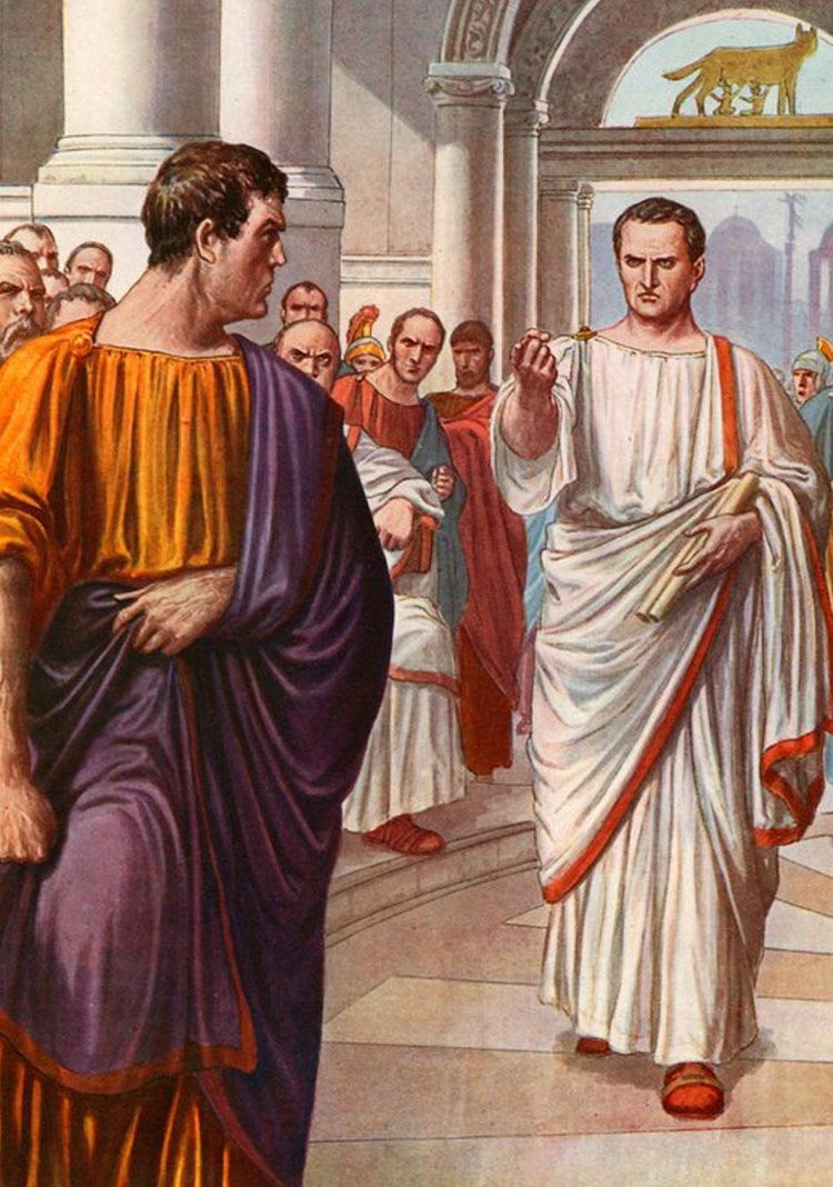 M.Ö. 106 yılında, Roma Cumhuriyeti’nin Arpinum kentinde doğan Marcus Tullius Cicero, köklü bir aileden gelmiyordu ve bu nedenle Roma’da “cumhuriyetin çocuğu” olarak anılıyordu. Genç yaşta hukuk, felsefe ve hitabet eğitimi aldı; zekâsı ve adalet anlayışı sayesinde hızla tanınan biri haline geldi. Yozlaşmış yöneticilere ve yargıçlara karşı açtığı davalarla adını duyurdu.